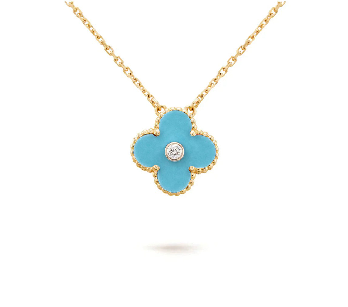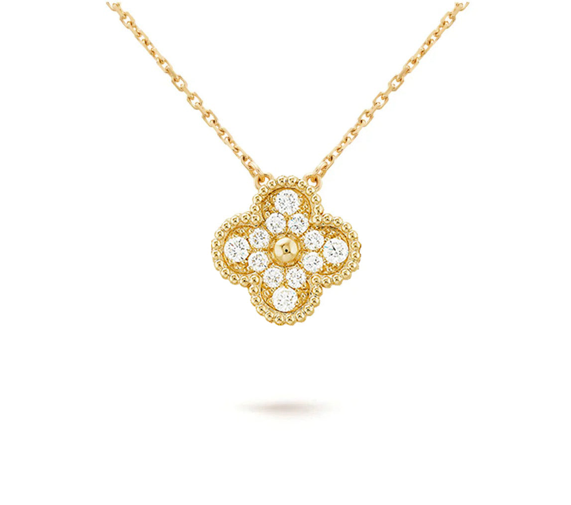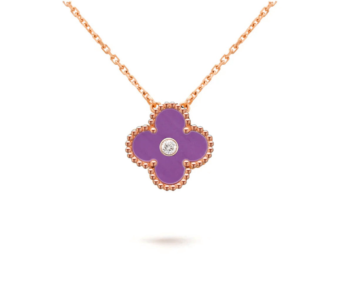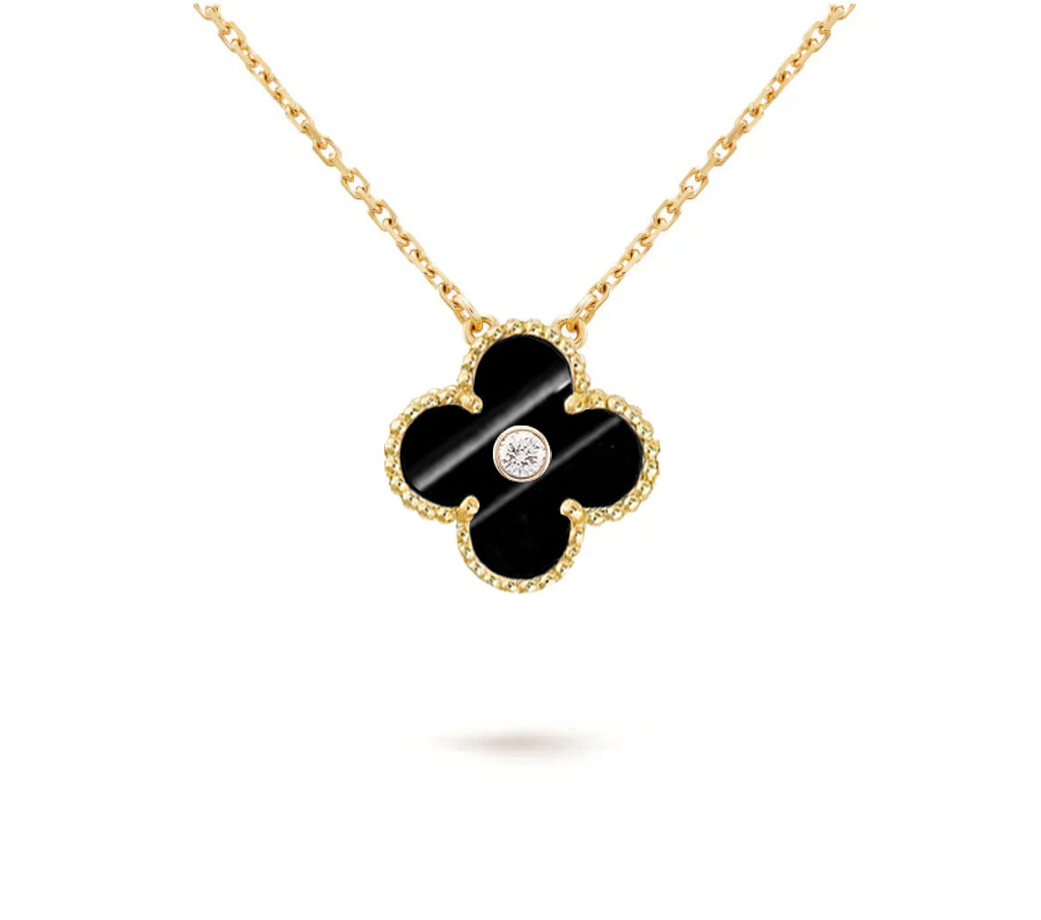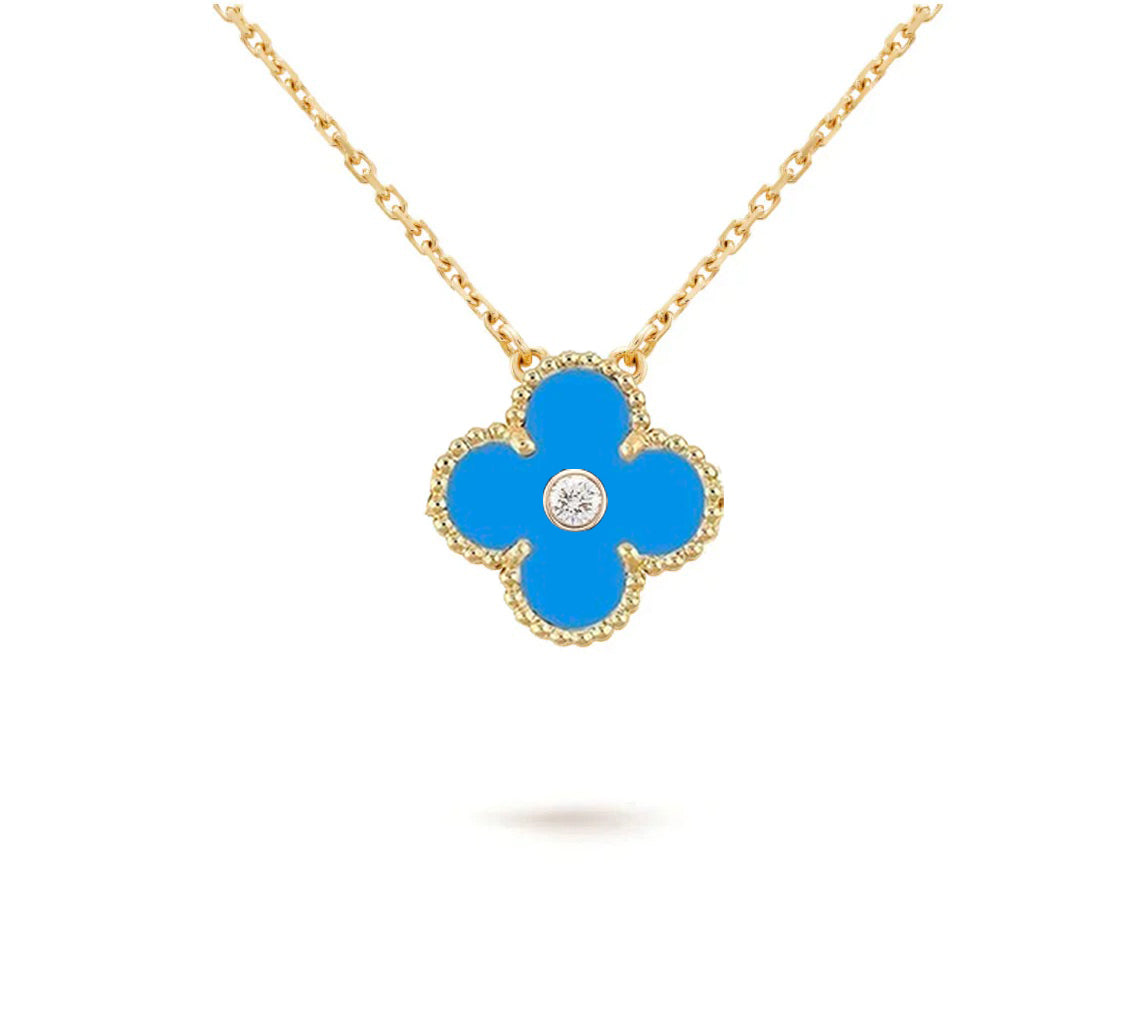[LUCKY LOVE]CLOVER 15MM DIAMOND SINGLE FLOWER NECKLACE COLLECTION