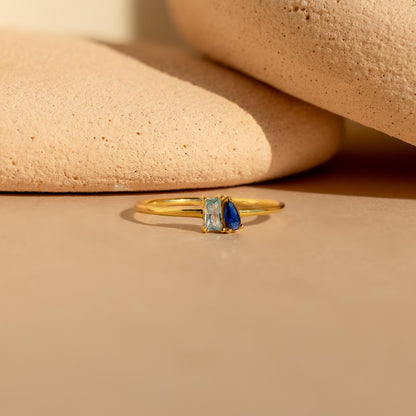 Celebrate love this Christmas with our Tiny Toi et Moi Birthstone Ring. Featuring a stunning baguette and pear-cut gemstone, this customizable ring lets you select birthstones to symbolize your unique bond.