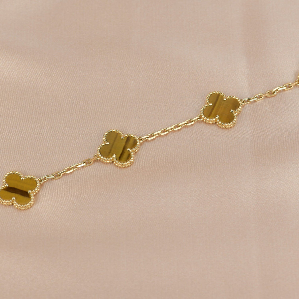 [LUCKY LOVE]CLOVER  5 MOTIFS TIGER EYE BRACELET
