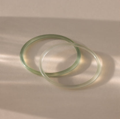 A symbol of serenity and strength, this Thin Jade Bangle Set blends minimalism with meaning. Each bangle features a sleek, translucent finish and softly rounded shape, designed to channel calm, balance, and positive energy. Wear them alone for a clean, quiet statement or stack with your favorite pieces for a modern, textured look __
