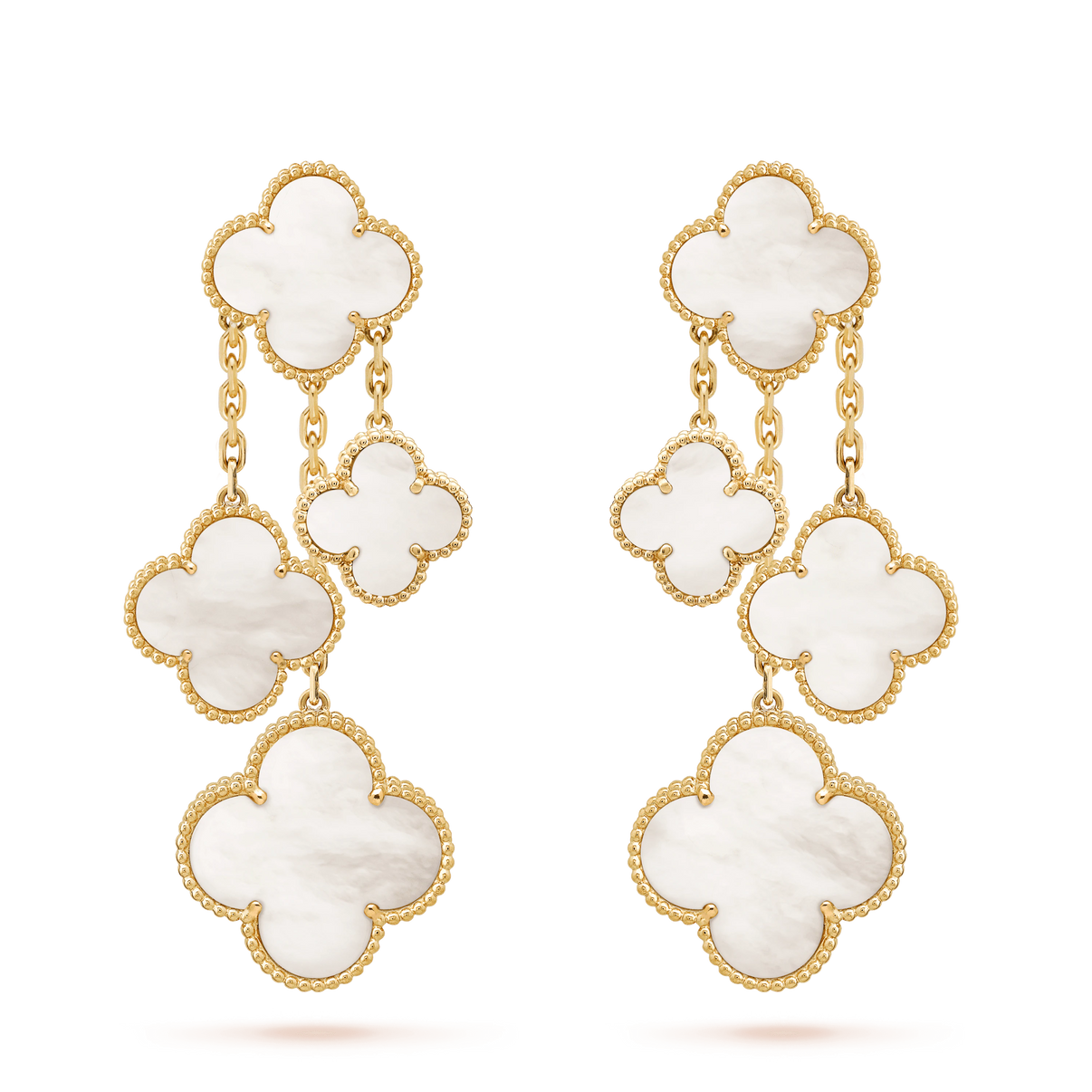 [LUCKY LOVE]CLOVER EARRINGS WHITE MOP 4 MOTIFS GOLD