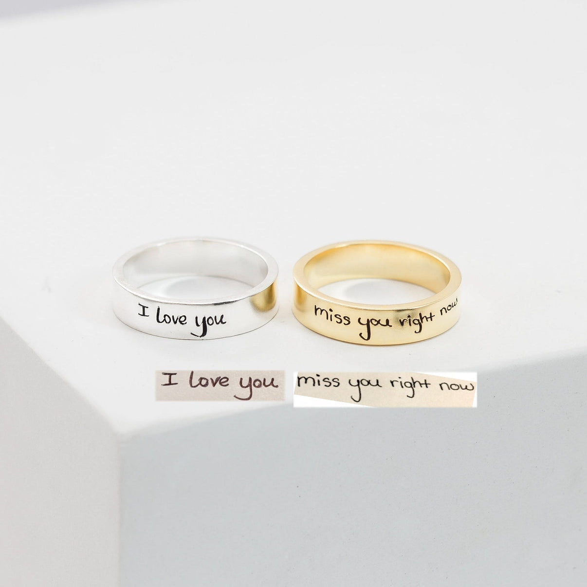 The sentimental Handwriting Band can be customized with your favorite handwritten message. It's great for an everyday ring and has a nice, polished sheen to it. A timeless keepsake made to cherish forever, it__ an ideal Christmas gift.