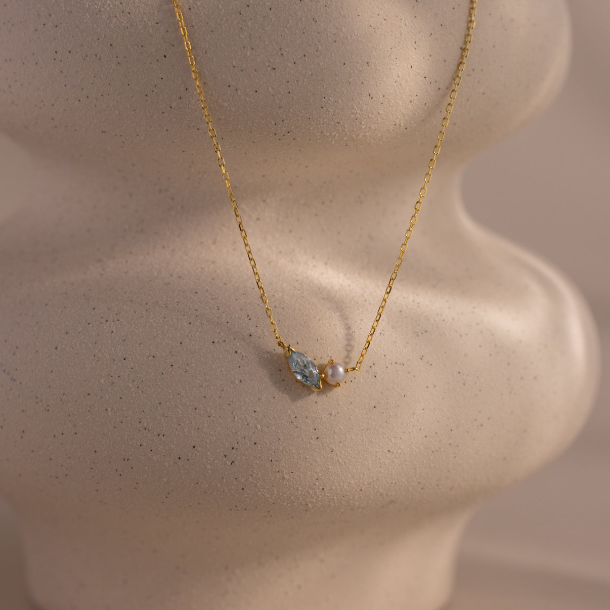 Delicate and deeply personal, our customizable Marquise Birthstone & Pearl Necklace features a luminous freshwater pearl paired with a marquise-cut birthstone of your choice, making it a meaningful piece made just for you.