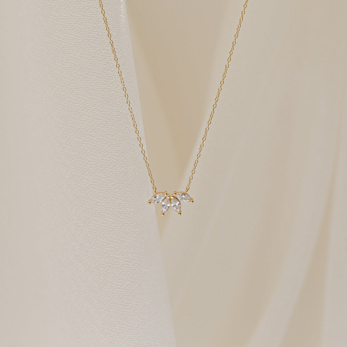 Add a touch of floral-inspired elegance to your holiday look with our Marquise Diamond Necklace. Featuring marquise-shaped diamonds arranged in a blooming motif, this dainty piece exudes glamour and femininity. Perfect for everyday sparkle or as a stunning gift for special occasions.